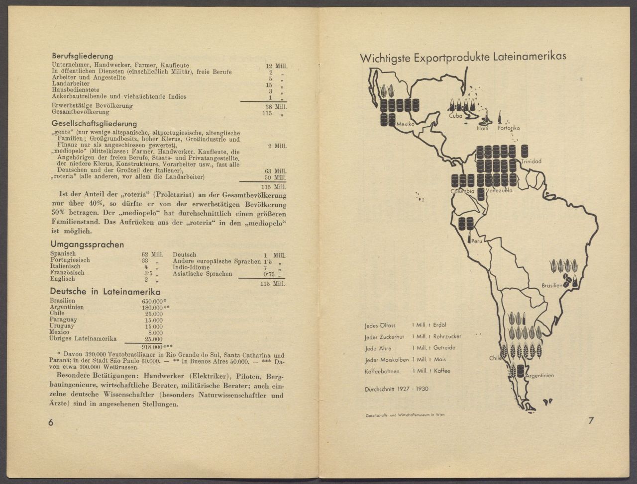 Berufsgliederung / Gesellschaftsgliederung / Umgangssprachen / Deutsche in Lateinamerika / Wichtigste Exportprodukte