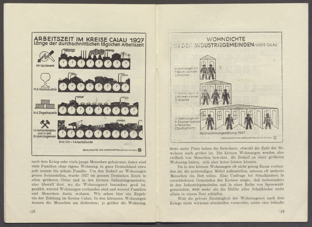 Arbeitszeit im Kreise Calau 1927 / Wohndichte in den Industriegemeinden |