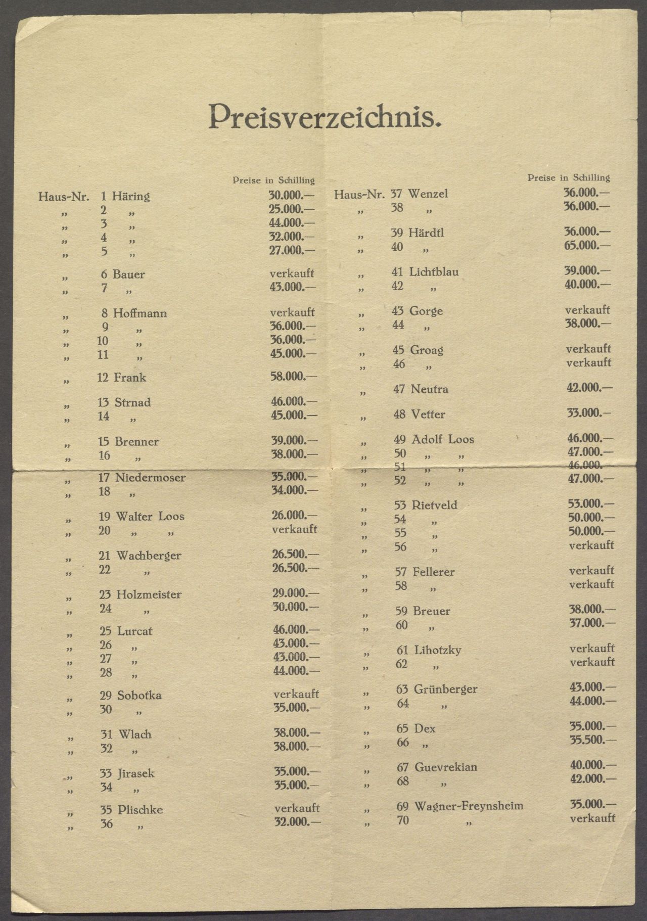 Preisverzeichnis