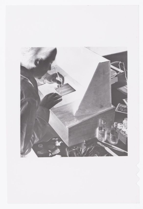 Retouche an einem Glasnegativ |